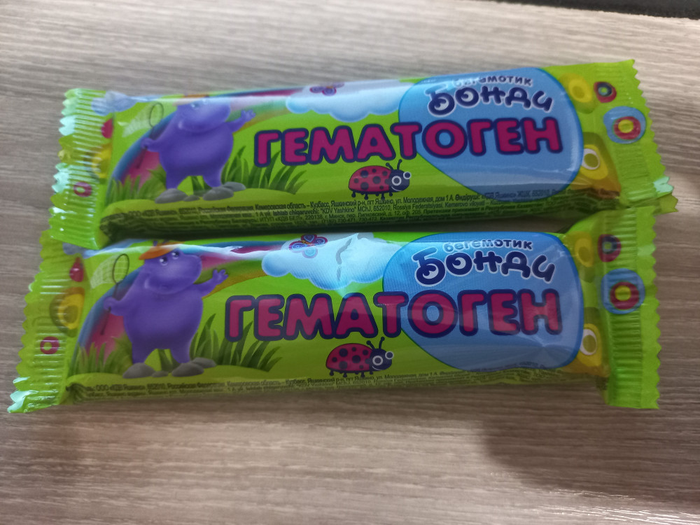 Бегемотик Бонди Гематоген «Бегемотик Бонди»В данный момент этот товар отсутствует в продаже. Возможно, у нас найдется аналогичный или похожий товар здесь. Гематоген по классической рецептуре: сахарный песок, молоко цельное сгущенное с сахаром, патока крахмальная, ванилин и альбумин — порошок гемоглобина, насыщающий организм железом. |