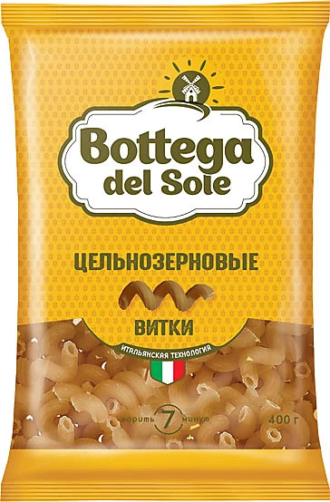 Изделия макаронные из муки твердых сортов пшеницы. Пшеницу для макаронных изделий собственной торговой марки «Bottega del Sole» выращивает на бескрайних и экологически чистых полях Алтая. Макароны по итальянской рецептуре произведены на современной автоматизированной линии — на таких же работают фабрики в Италии, где как известно, в макаронах знают толк!