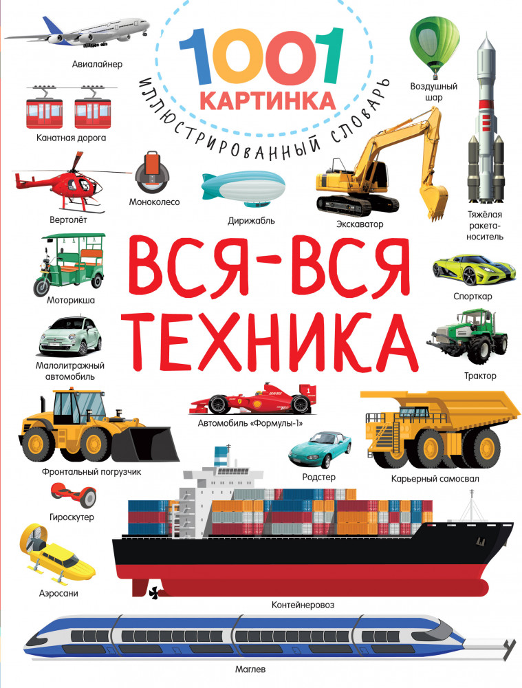 Серия: 1001 картинка: иллюстрированный словарь «Вся-вся техника» — это красочно иллюстрированный словарь для детей. Книга позволит малышам познакомиться с разными видами техники, от спортивных автомобилей и грузовиков до машин городских служб и общественного транспорта. Рассматривая красочные картинки и запоминая названия машин, ребёнок с пользой проведёт свободное время. |