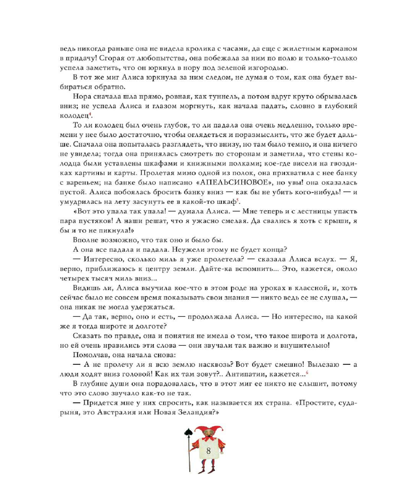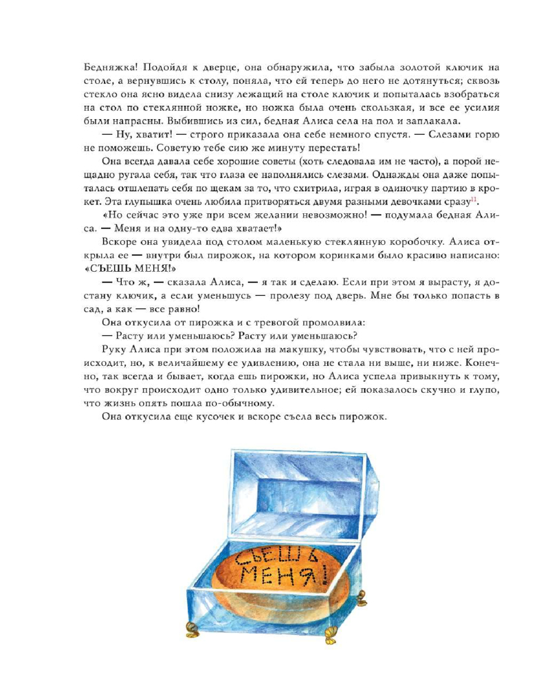 Серия: Лучшие сказки мира Сказка Льюиса Кэрролла «Алиса в Стране Чудес» — произведение сложное, многозначное и необычайно трудное для перевода и иллюстрирования. Понять, что скрывается за ребусами, чудаковатыми диалогами и образами непросто. В сказке много смыслов и загадок, но одно остаётся неизменным: её героиня — очаровательная, любопытная и добрая девочка Алиса. Льюис Кэрролл написал этот образ со своей маленькой приятельницы, дочери коллеги по колледжу. Алиса получилась невероятно живой среди фантастических персонажей сказки. Эту радость жизни и всю полноту ощущений ребёнка талантливо передал художник Александр Кошкин. Сказка в этом издании выходит в классическом переводе Н. Демуровой. |