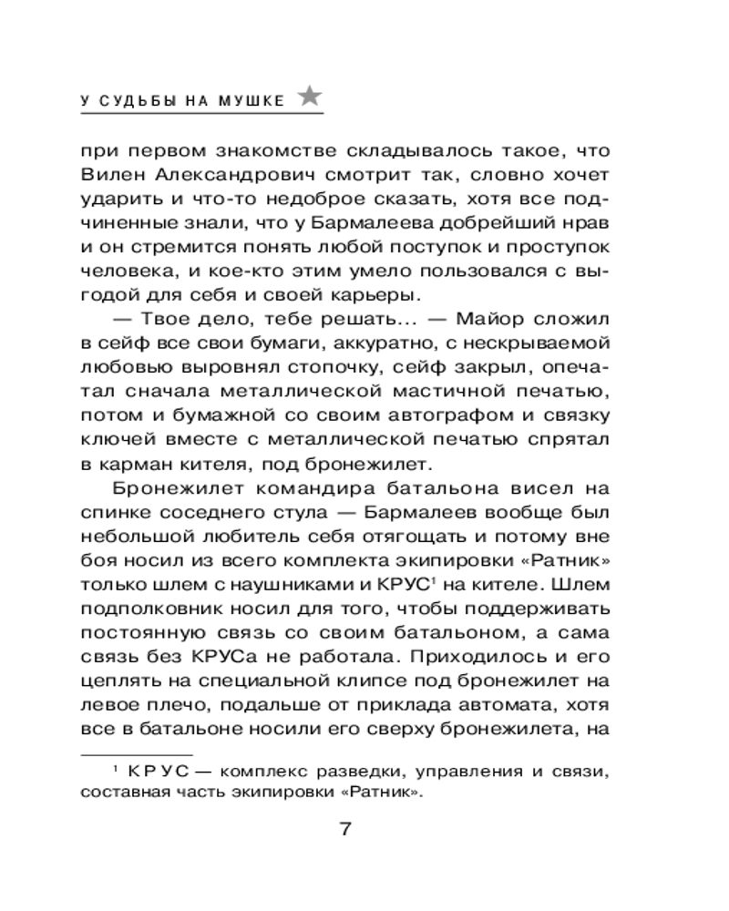 Серия: Спецназ ГРУ (обложка) Подполковник Вилен Бармалеев командует разведывательным батальоном в Сирии. Вместе с приданными ему подразделениями морских пехотинцев и сирийской народной армии спецназ ГРУ успешно громит банды моджахедов по всей линии фронта. Но однажды случается невероятное — один из бойцов батальона не выполнил приказ своего командира. Что это — саботаж или малодушие? Бармалеев не спешит с выводами, тем более что случившиеся вскоре грозные события показали, кто оказался прав на самом деле... |