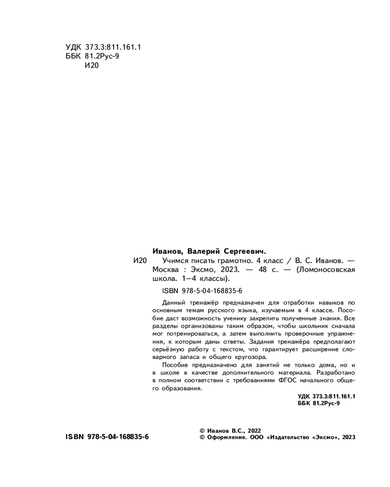 | Учимся писать грамотно. 4 класс Валерий Сергеевич Иванов