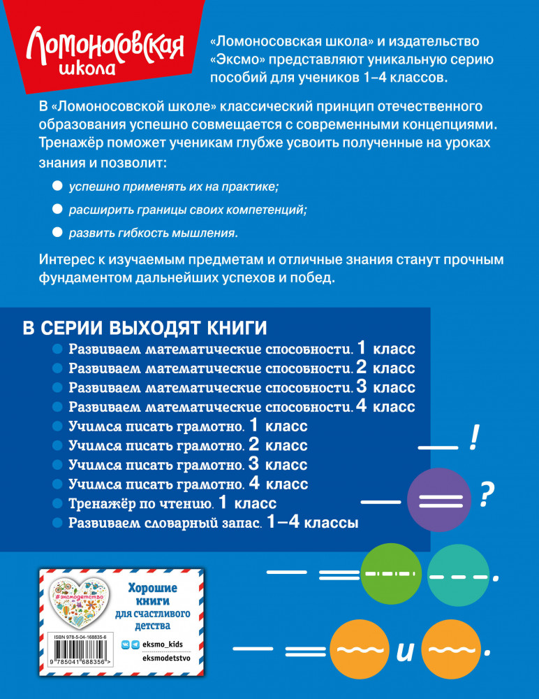 В данный момент этот товар отсутствует в продаже. Возможно, у нас найдется аналогичный или похожий товар здесь. Серия: Ломоносовская школа. 1-4 классы «Ломоносовская школа» — общепризнанный лидер на рынке образовательных услуг. Авторы этой серии сочетают новаторские подходы к обучению с классическим наследием отечественной педагогики. Такое сочетание гарантирует высокий уровень знаний учеников.