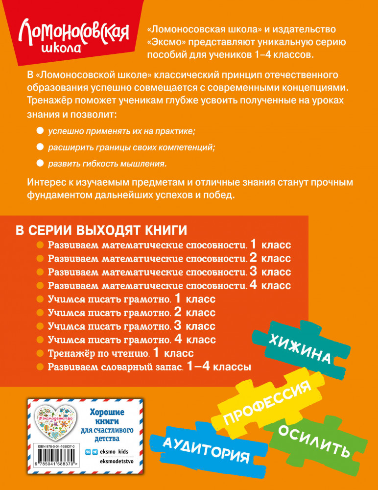 В данный момент этот товар отсутствует в продаже. Возможно, у нас найдется аналогичный или похожий товар здесь. Серия: Ломоносовская школа. 1-4 классы «Ломоносовская школа» — общепризнанный лидер на рынке образовательных услуг. Авторы этой серии сочетают новаторские подходы к обучению с классическим наследием отечественной педагогики. Такое сочетание гарантирует высокий уровень знаний учеников.