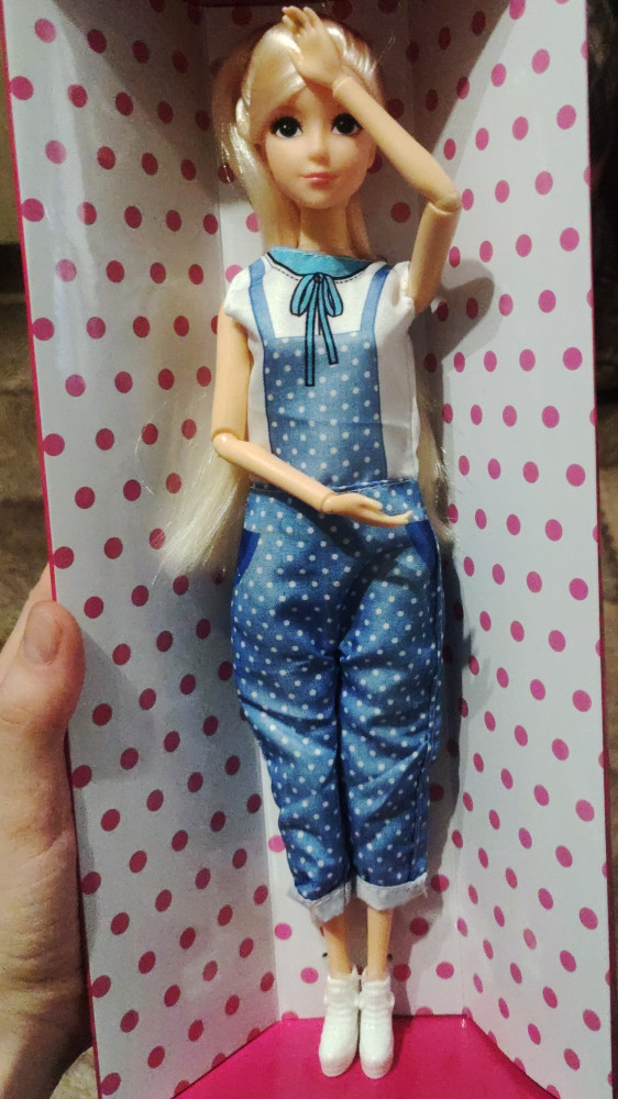 Красивая кукла, лицо милое и доброе. Волосы аккуратные, блестящие))) 10 из 10))) Руки, ноги сгибаются по суставам. Очень жаль, что я не маленькая уже, она была б у меня любимой😄