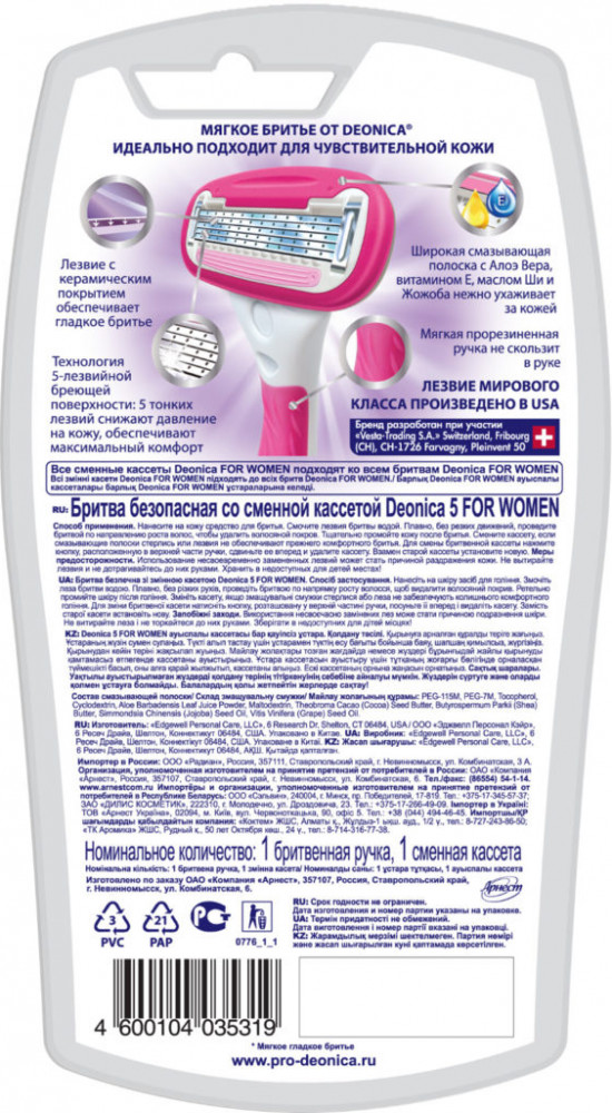 Deonica Станок для бритьяВ данный момент этот товар отсутствует в продаже. Возможно, у нас найдется аналогичный или похожий товар здесь. Серия: For women Технология 5-лезвийной бреющей поверхности женской безопасной бритвы Deonica снижает давление на кожу, обеспечивая максимальный комфорт во время бритья даже для самой чувствительной кожи. 5 тонких лезвий мирового класса произведены в США, они имеют двойное керамическое покрытие, что гарантирует более точное и чистое бритье |