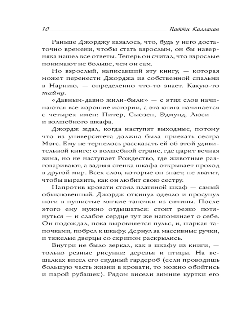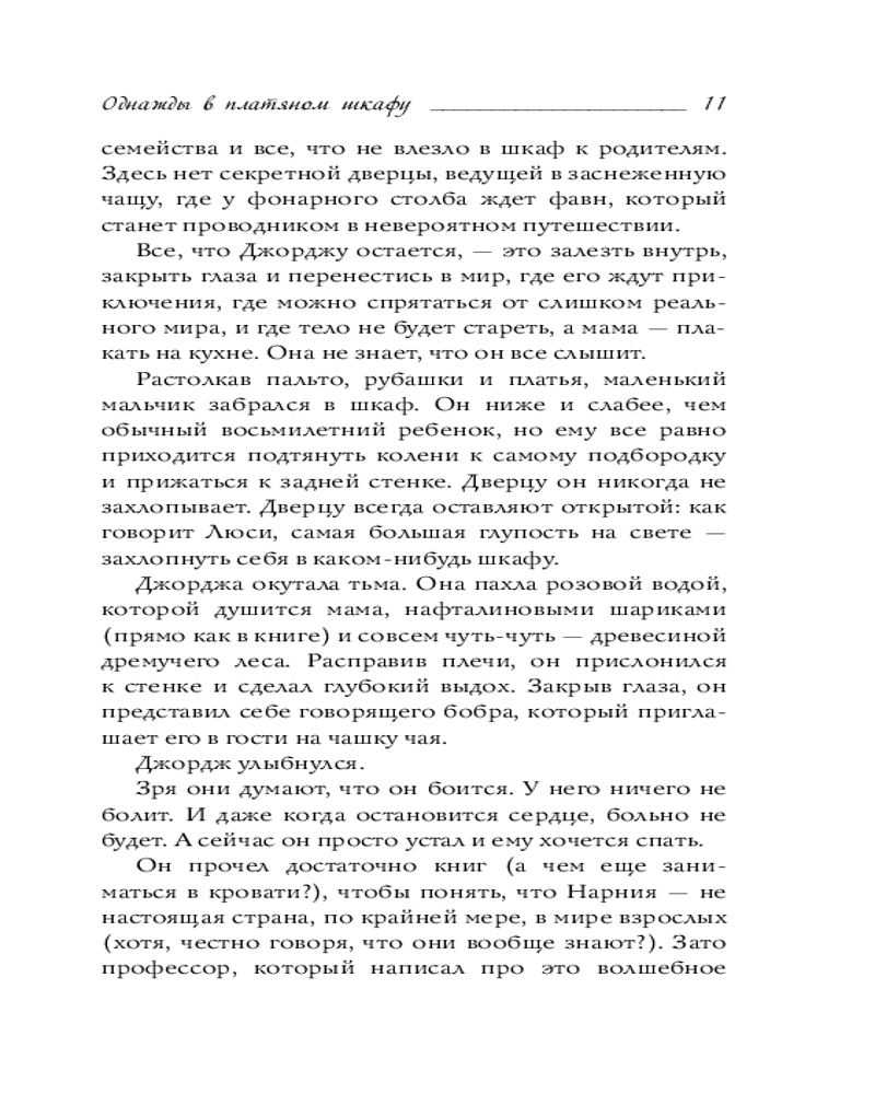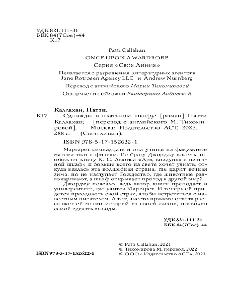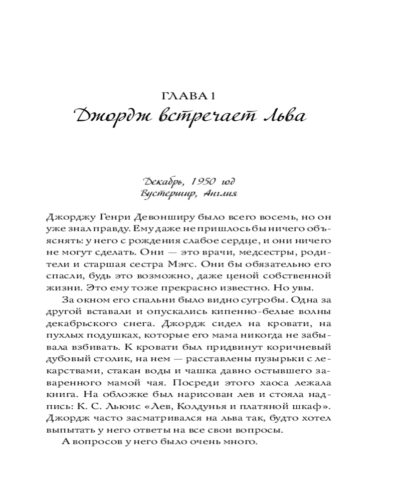 Серия: Своя линия Маргарет семнадцать и она учится на факультете математики и физики. Ее брату Джорджу восемь, он обожает книгу К. С. Льюиса «Лев, колдунья и платяной шкаф» и больше всего на свете хочет узнать: откуда взялась эта волшебная страна, где царит вечная зима, но не наступает Рождество, где животные разговаривают, а шкаф открывает проход в другой мир? Джорджу повезло, ведь автор книги преподает в университете, где учится Маргарет. И теперь ей придется преодолеть свой страх, чтобы встретиться с известным писателем. А тот, вместо прямого ответа расскажет ей много историй из своей жизни, позволив самой сделать выводы. |