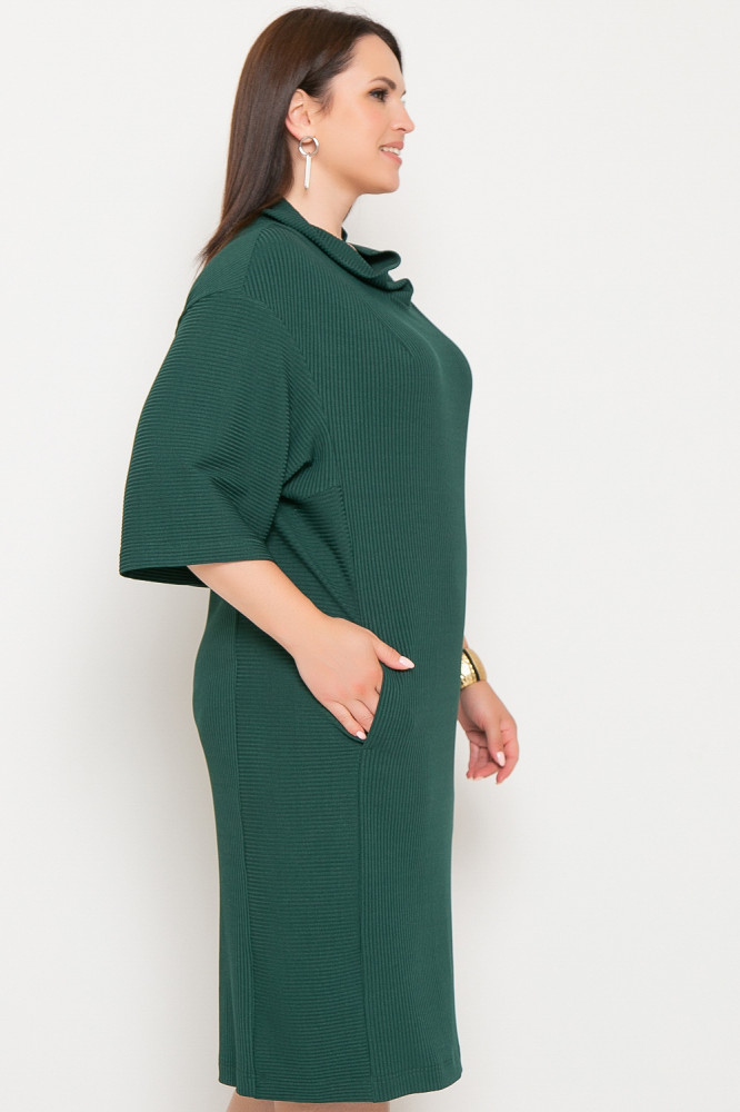 В целом неплохое платье. Легкий трикотаж в рубчик. Идет в размер. Для высоких.
