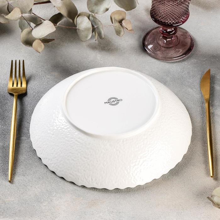 Серия посуды «Бланш» торговой марки Magistro — безошибочный выбор для сервировки стола. Предметы серии выполнены из качественного фарфора с высоким содержанием каолина и покрыты нежно-белой глазурью. Такую посуду можно использовать для оформления стола в стилях: прованс, экостиль, кантри, шебби-шик, минимализм.