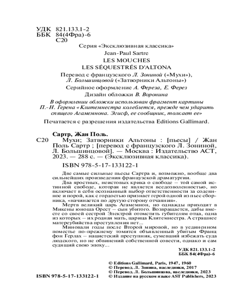 Серия: Эксклюзивная классика Две самые сильные пьесы Сартра и, возможно, вообще два сильнейших произведения французской драматургии. |