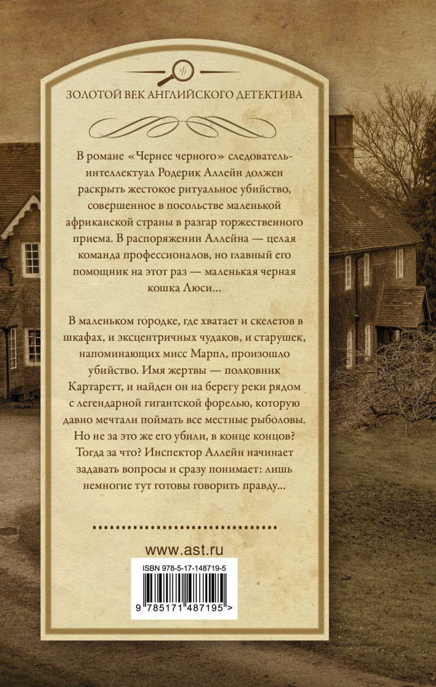 Серия: Золотой век английского детектива В романе «Чернее черного» следователь-интеллектуал Родерик Аллейн должен раскрыть жестокое ритуальное убийство, совершенное в посольстве маленькой африканской страны в разгар торжественного приема. В распоряжении Аллейна — целая команда профессионалов, но главный его помощник на этот раз — маленькая черная кошка Люси... |