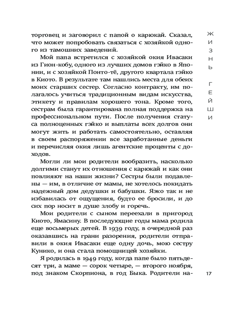 Мне понравилась книга. Очень интересно узнать жизнь гейши с «изнанки». Вдогонку заказала «Мемуары гейши».