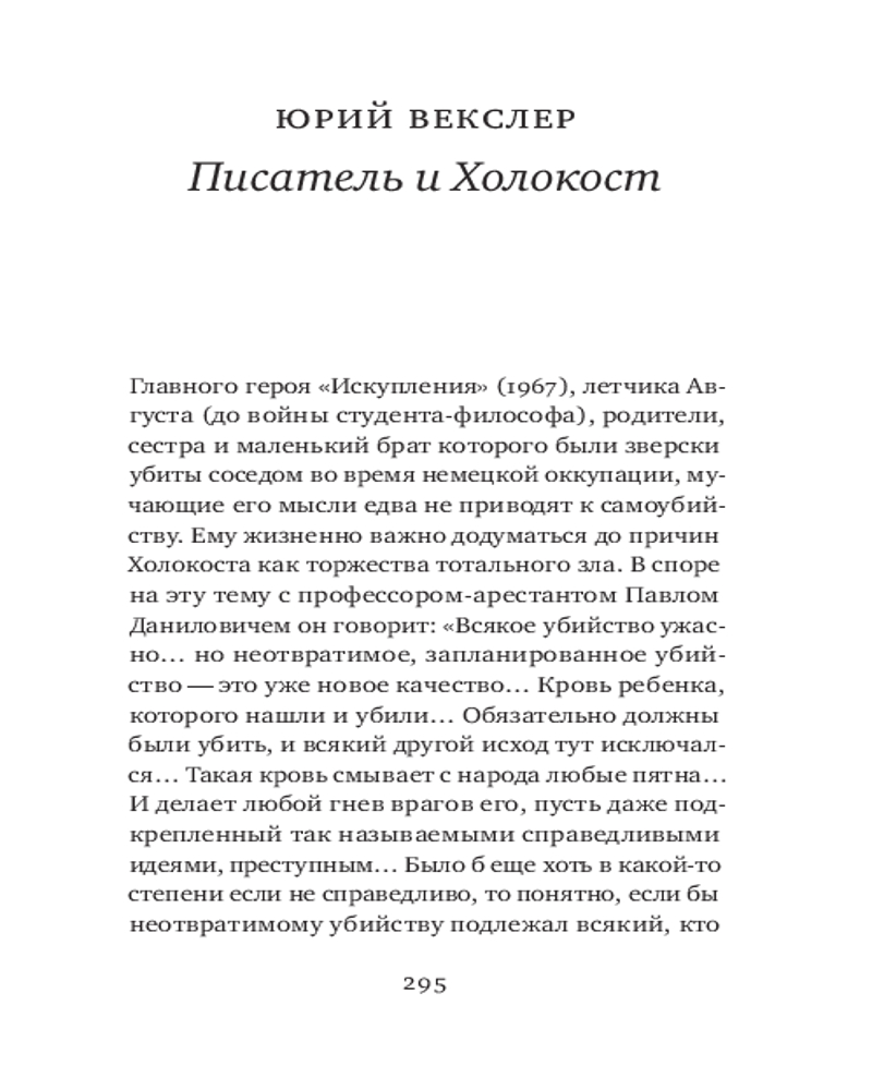 Серия: Проза еврейской жизни «Искупление» Фридриха Горенштейна — пример мастерского превращения сюжета для рассказа с классическим для драматургии единством места, времени и действия в компактный роман с философскими размышлениями о Холокосте и кинематографической яркостью деталей. |
