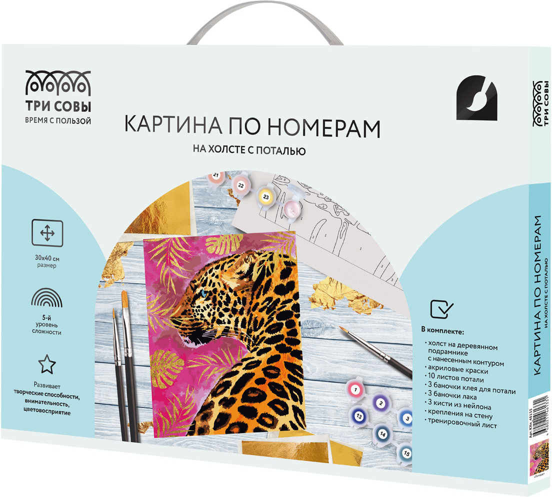 • холст на деревянном подрамнике 30×40 см с нанесенным контуром, пронумерованный в соответствии с номерами красок;