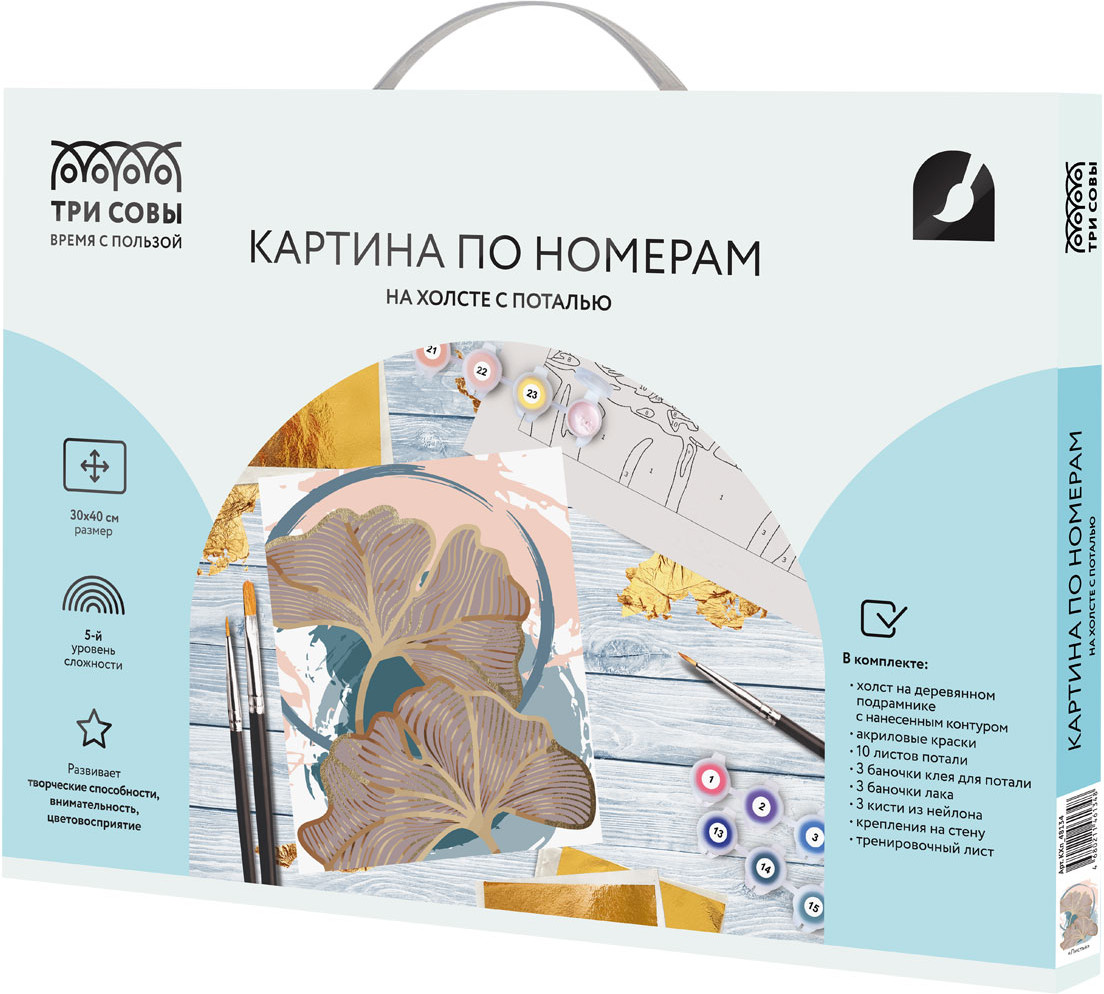 • холст на деревянном подрамнике 30×40 см с нанесенным контуром, пронумерованный в соответствии с номерами красок;