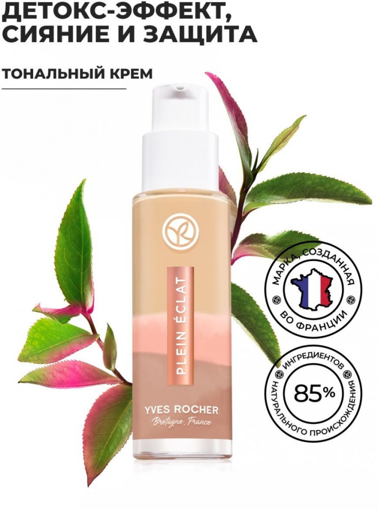 Yves Rocher Крем тональный для лица «Plein Eclat», оттенок 075 Розовый