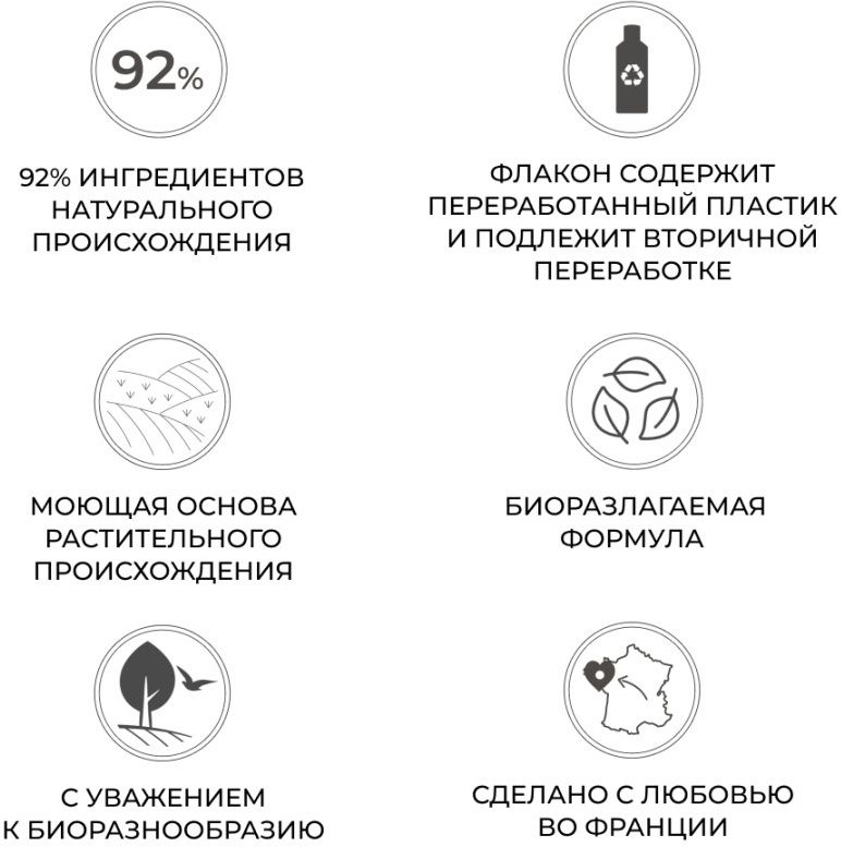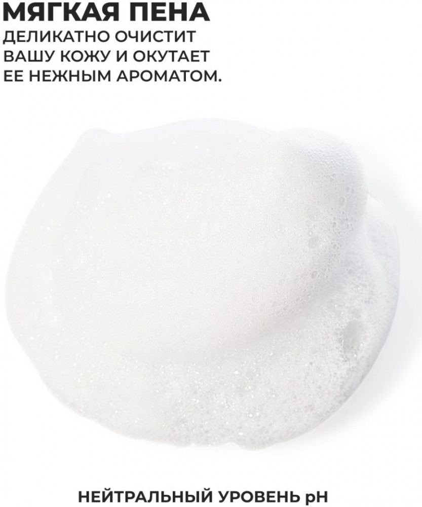 Очищает кожу. Не пересушивает. Образует высокую пену. Не оседает. Быстро смывается. Следов не оставляет. Имеет приятный нежный аромат. Расходуется медленно.