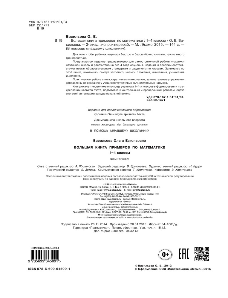 Большая книга примеров и заданий по математике. 1-4 классыВ данный момент этот товар отсутствует в продаже. Возможно, у нас найдется аналогичный или похожий товар здесь. Серия: В помощь младшему школьнику Для того чтобы ребенок научился быстро и безошибочно считать, нужно много тренироваться. |