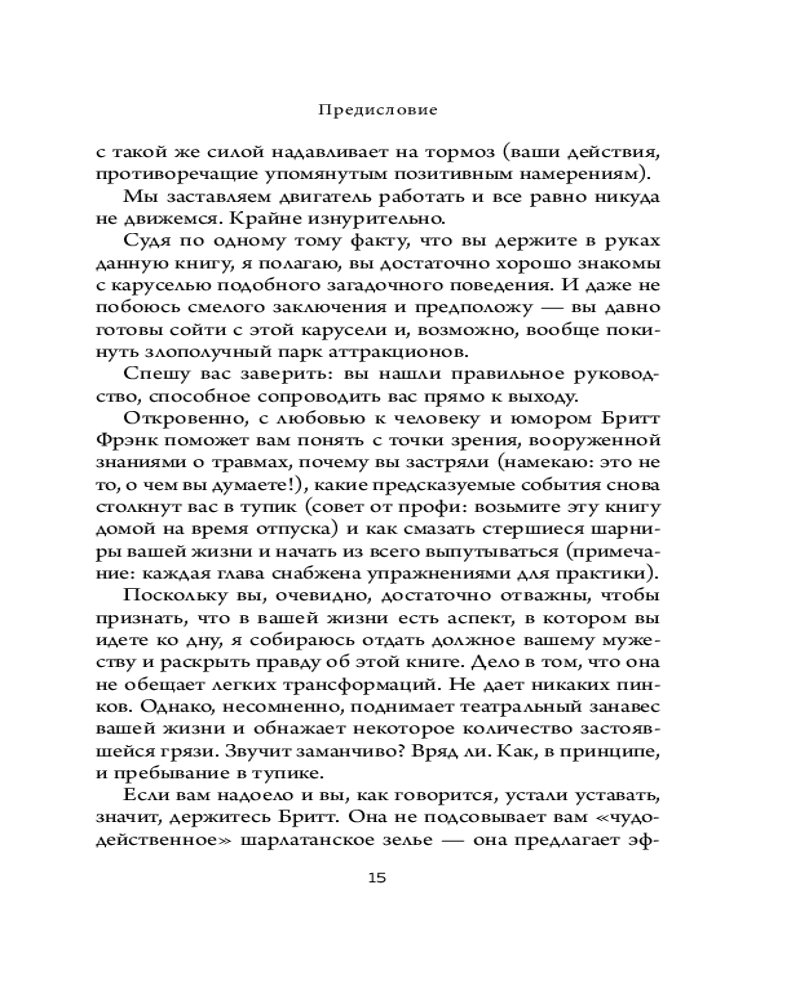Бритт Франк не понаслышке знает о тупике в жизни. Как психотерапевт она убеждена, что вы не ленивы и не безумны. Мы все иногда не хотим ехать на работу и чувствуем, что застряли на ней без перспектив; терпим неудачу в отношениях, не можем завести друзей, не хотим выбираться из дома, а главное, не знаем, что делать дальше.