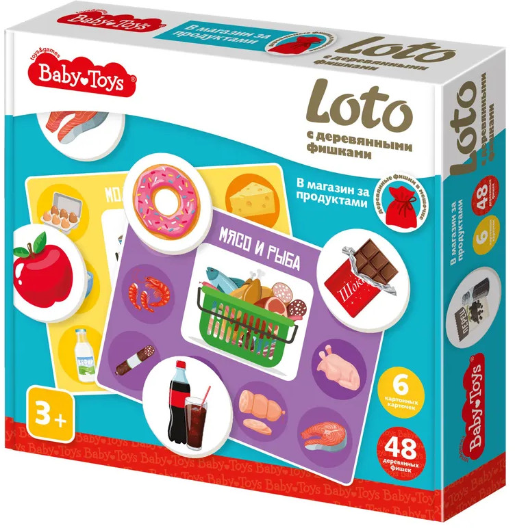 Познакомьте вашего ребёнка с ассортиментом продуктового магазина: какие продукты можно купить и в каких отделах магазина.Играйте вместе с детьми в лото «В магазин за продуктами», изучайте новые слова и названия продуктов. |