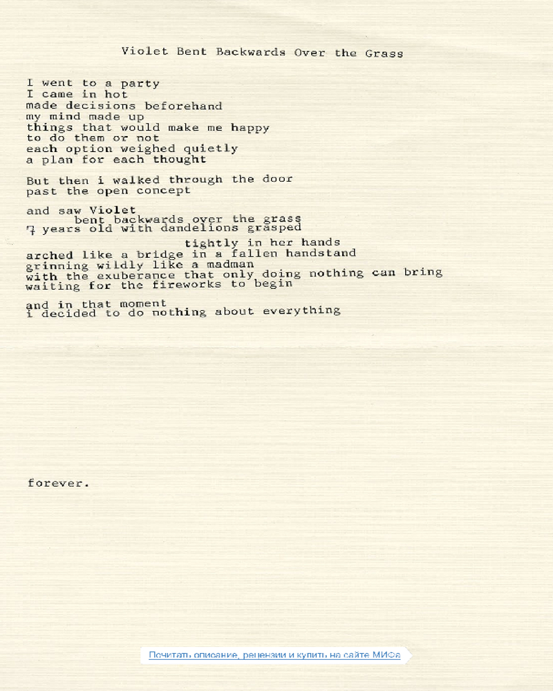 Ждала сборник Ланы, спасибо Флип! Пока просто пролистала сборник, некоторые стихи довольно неплохие. книга в отличном состоянии