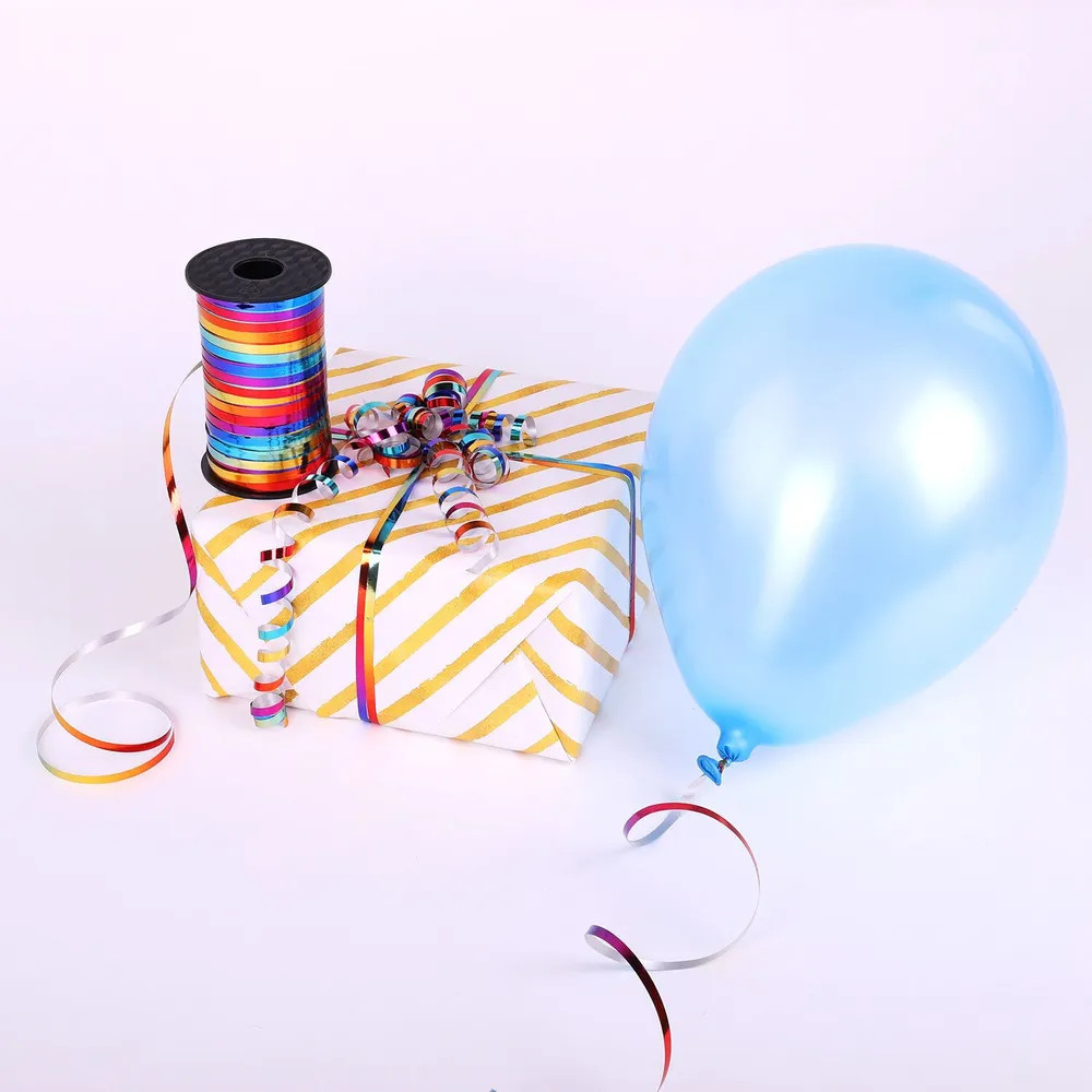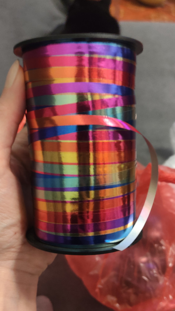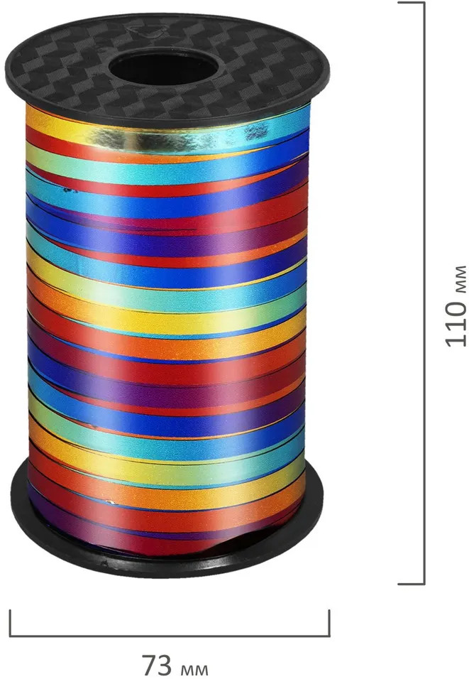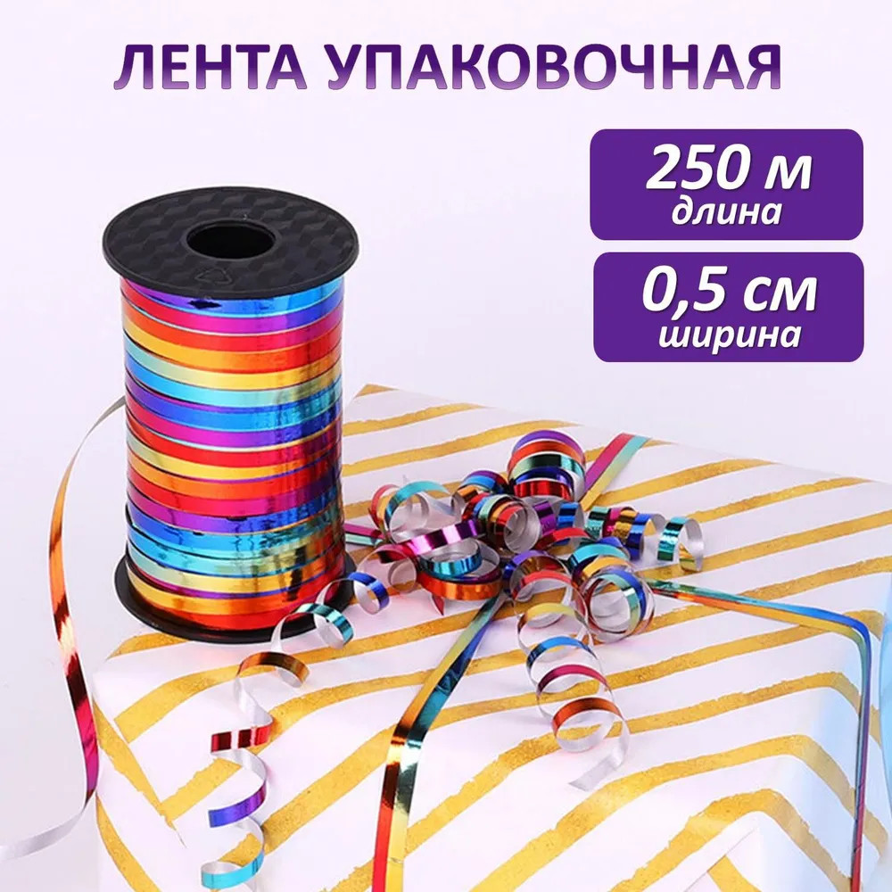 Лента упаковочная декоративная «Золотая сказка» предназначена для завязывания воздушных шаров и гирлянд, для декорирования подарков, для оформления праздничных композиций, кондитерских наборов. Лента также широко используется во флористике и в рукоделии. Лента шириной 5 мм и длиной 250 м изготовлена из прочного полипропилена (70%) и полиэтилена (15%) и полиэтилентерефталата (15%). Толщина ленты 130 мкм (0,13 мм). Цвет ленты — мультицветный металлик. Лента намотана на пластиковую бабину и упакована в термоусадочную пленку, поверх которой есть два стикера (цветной стикер с демонстрацией товара и черно-белый стикер с технической информацией). |