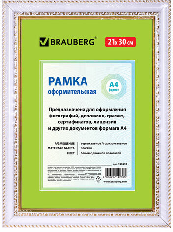Серия: Hit-4 Рамка «Brauberg» Hit4 для оформления фотографий, дипломов, сертификатов, грамот, лицензий и других документов формата А4 (21×30 см) будет гармонично смотреться в любом интерьере — дома и офисе, учебных учреждениях и магазинах, салонах и предприятий и др. |