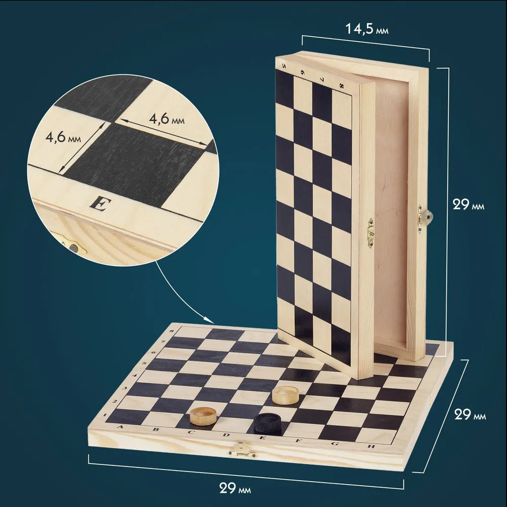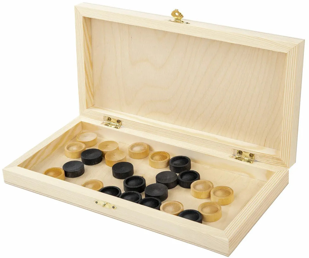Шашки классические деревянные Золотая сказка — развлекательная игра для всей семьи, которая помогает развивать логическое и пространственное мышление, память. Идеальный набор для интеллектуального времяпрепровождения. |