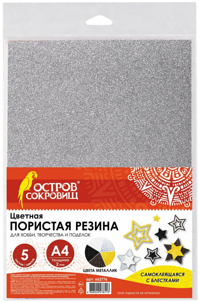 Цветная пористая резина (фоамиран) Остров сокровищ предназначена для хобби, творчества и рукоделия. 5 цветов металлик с глиттером формата А4 на самоклеющейся основе позволят создать уникальную и эффектную поделку! Толщина каждого листа — 2 мм, размер листа — 29,7×21 см. Материал очень прост в использовании: легко режется обычными ножницами, ему можно придать любую форму растягивая и скручивая. Глиттерный фоамиран-это фоамиран, декорированный блестками. Материал легко режется обычными ножницами, ему можно придать любую форму растягивая и скручивая, блёстки не осыпаются. Самоклеящаяся основа позволяет использовать пористую резину без применения клея, качественный клеевой слой надёжно фиксирует фоамиран на различных поверхностях.Цвета металлик помогут выгодно выделить Вашу поделку, а их насыщенность не оставит никого равнодушным.Используется для создания флористического декора, аппликаций, сувениров, детского рукоделия и создания украшений. Готовые изделия представляют собой: аксессуары для волос (банты, ободки, резинки, короны), бижутерию, банты для подарочных упаковок, елочные игрушки. Не токсична, безопасна для детского творчества. |