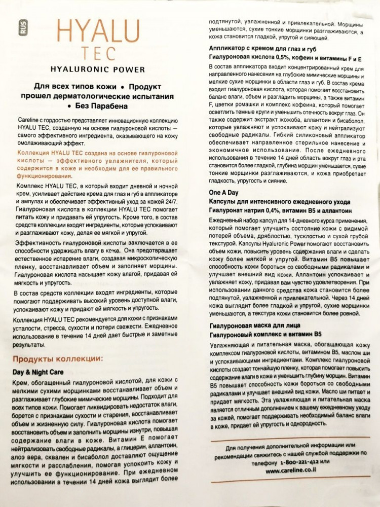 Careline Крем для лица с гиалуроновой кислотой «Дневной и ночной уход»-15% +450