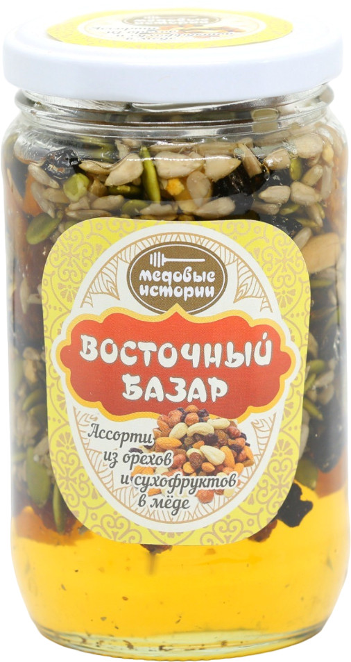 Серия: Восточный базар Медовая композиция «Восточный базар» представляет собой настоящий подарок для вас и ваших близких. Это высококачественный натуральный мёд с орехами и сухофруктами. Мед — ценнейший природный продукт, не имеющий аналогов. Натуральный продукт, не содержит добавок и консервантов. |