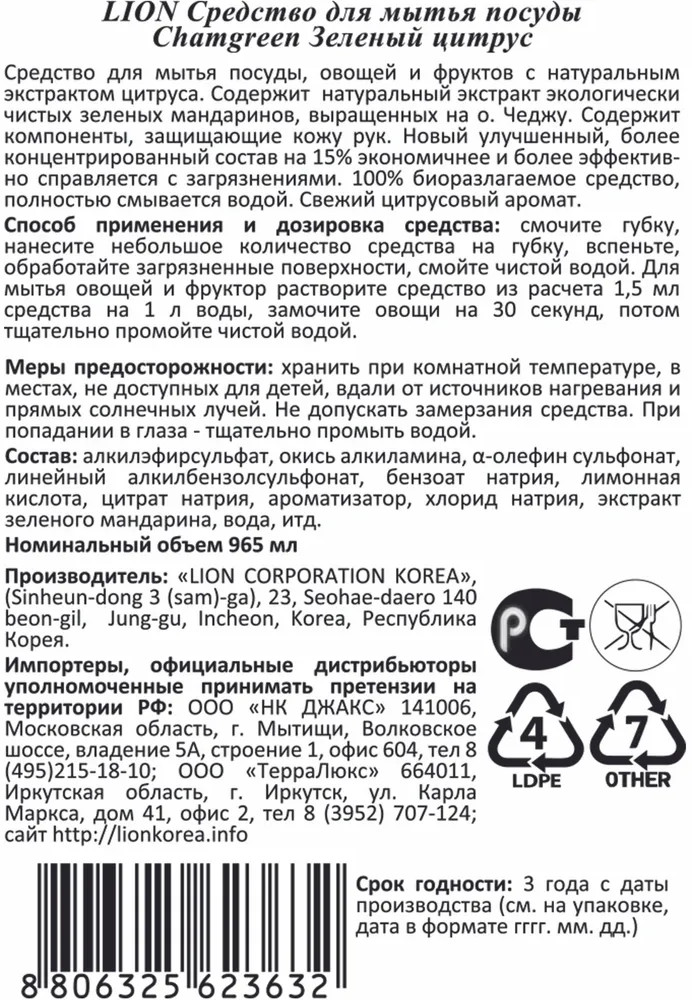 Серия: Chamgreen Средство для мытья посуды, овощей и фруктов содержит натуральный экстракт экологически чистых зеленых мандаринов, выращенных на острове Чеджу, которые оказывают смягчающее и успокаивающее действие на кожу рук. Легкий фруктовый аромат превращает мытье посуды в приятное удовольствие. Моющие компоненты на растительной основе обеспечивают мягкое и деликатное мытье посуды. Подходит для чувствительной кожи. Средство имеет сертификат Eco и является безопасным для здоровья всей семьи и окружающей среды. Жидкости для мытья посуды Chamgreen: концентрированные, экологичные, биоразлагаемые, обладают бактерицидным действием, легко, быстро и на 100% смываются водой, эффективно расщепляют жиры, устраняют неприятные запахи, не сушат кожу рук, обладают приятными ароматами. |