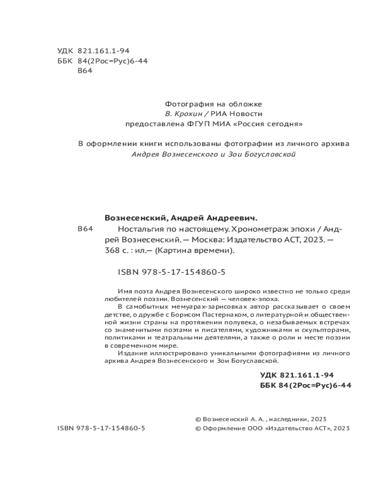 | Ностальгия по настоящему. Хронометраж эпохи Андрей Андреевич Вознесенский