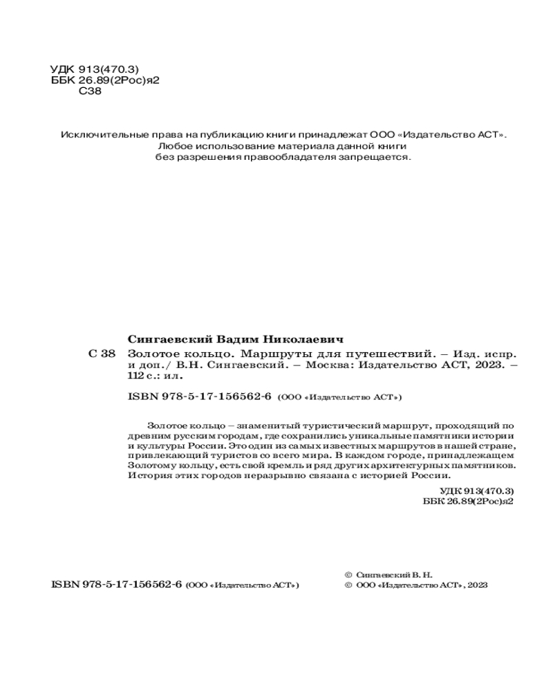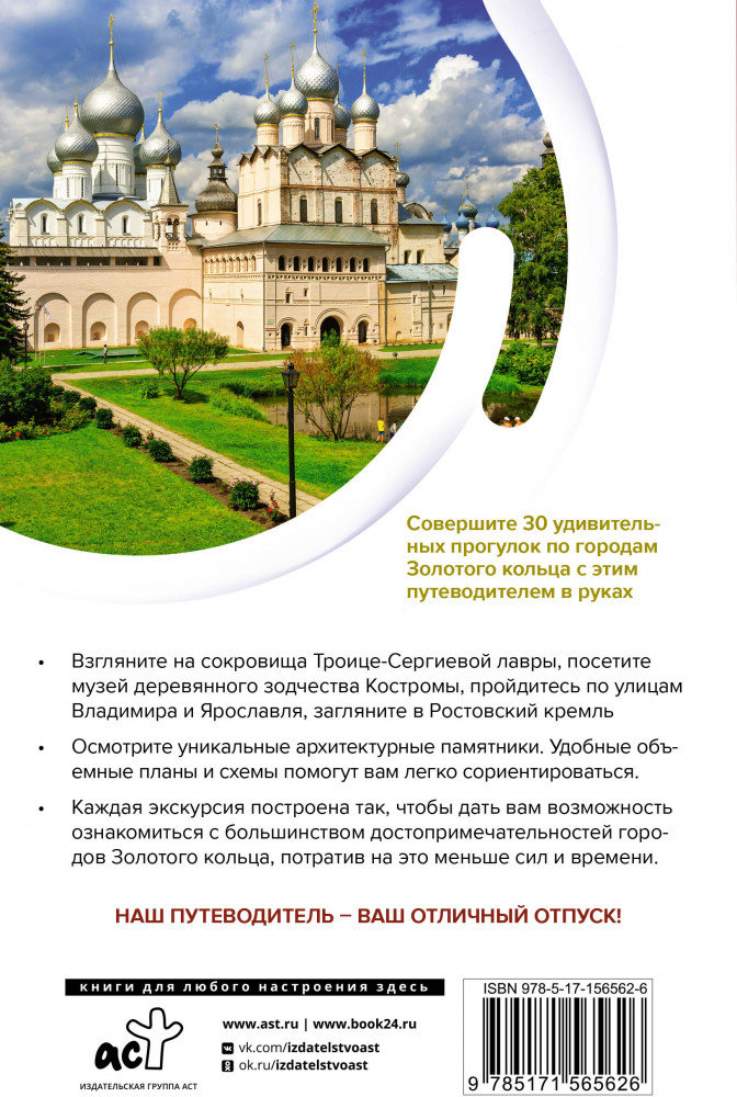 Серия: Маршруты для путешествий. Путеводители Золотое кольцо — знаменитый туристический маршрут, проходящий по древним русским городам, где сохранились уникальные памятники истории и культуры России. Это один из самых известных маршрутов в нашей стране, привлекающий туристов со всего мира. В каждом городе, принадлежащем Золотому кольцу, есть свой кремль и ряд других архитектурных памятников. История этих городов неразрывно связана с историей России. |