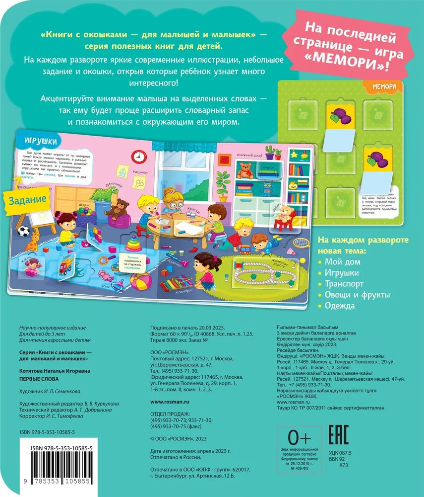 💳 Оплатить за товар можно при получении 🇰🇿 Есть бесплатная доставка по Казахстану 🎁 Копите бонусы с каждой покупки Серия: Книги с окошками — для малышей и малышек «Книги с окошками для малышей и малышек» серия полезных книг для детей. |