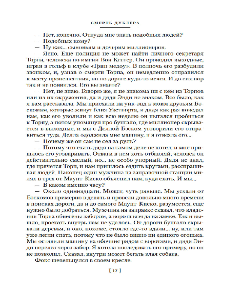 Смерть дублераВ данный момент этот товар отсутствует в продаже. Возможно, у нас найдется аналогичный или похожий товар здесь. Серия: Иностранная литература. Классика детектива Рекс Стаут, создатель знаменитого цикла детективных произведений о Ниро Вулфе, большом гурмане, страстном любителе орхидей и одном из самых великих сыщиков, описанных когда-либо в литературе, на этот раз поручает расследование запутанных преступлений частному детективу Текумсе Фоксу, округ Уэстчестер, штат Нью-Йорк. В уединенном лесном коттедже найдено тело Ридли Торпа, финансиста с незапятнанной репутацией. Энди Грант, накануне убийства посетивший поместье Торпа и первым обнаруживший труп, обвиняется в совершении преступления. Нэнси Грант, сестра Энди, обращается к Текумсе Фоксу, чтобы тот снял с ее брата обвинение в несовершённом убийстве. Фокс принимается за расследование («Смерть дублера»). |