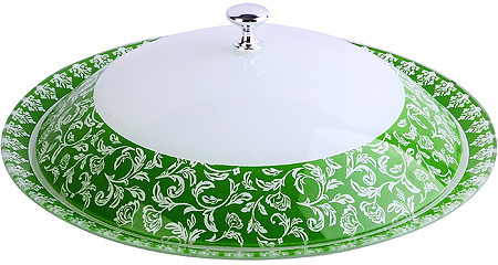 Разочарована. Ожидания не оправдались. Рисунок выглядящий на фото, как золотой в реальности оказался желтой, невзрачной краской. Крышка мелковатая, внутри матовая. Ручка плотно не прикрутилась. Само блюдо небольшое, больше похоже на тонкую, плоскую стеклянную тарелку, и рисунок на нем, как тонкий ободок. В общем у меня плюсов не нашлось совсем. Жаль потраченных денег. Если бы увидела никогда не купила.
