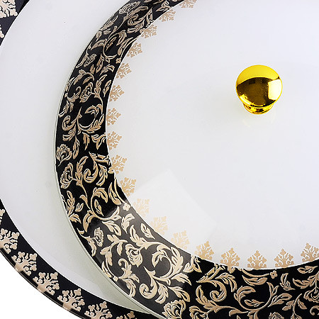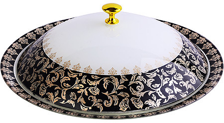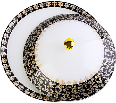 Разочарована. Ожидания не оправдались. Рисунок выглядящий на фото, как золотой в реальности оказался желтой, невзрачной краской. Крышка мелковатая, внутри матовая. Ручка плотно не прикрутилась. Само блюдо небольшое, больше похоже на тонкую, плоскую стеклянную тарелку, и рисунок на нем, как тонкий ободок. В общем у меня плюсов не нашлось совсем. Жаль потраченных денег. Если бы увидела никогда не купила.