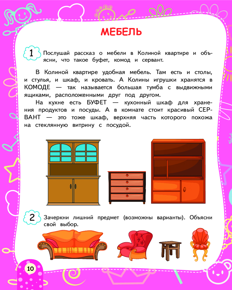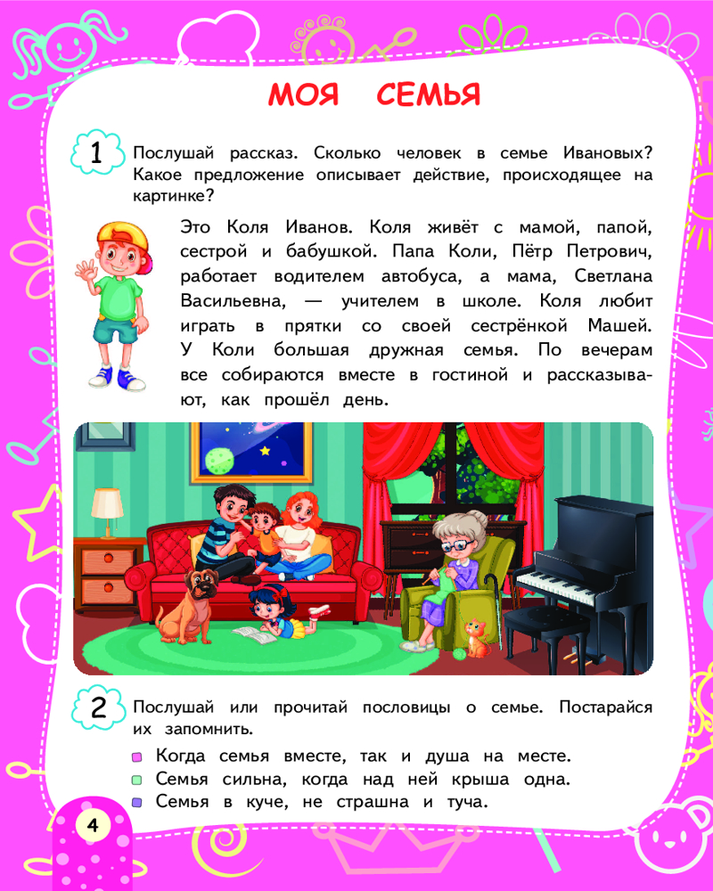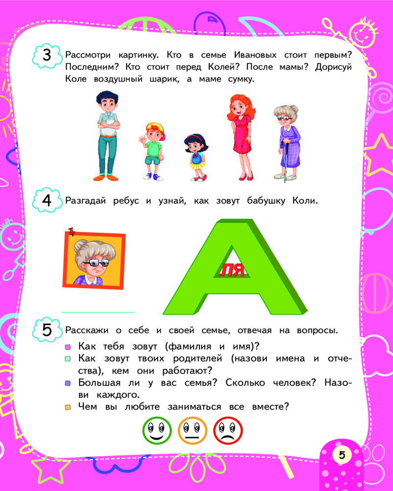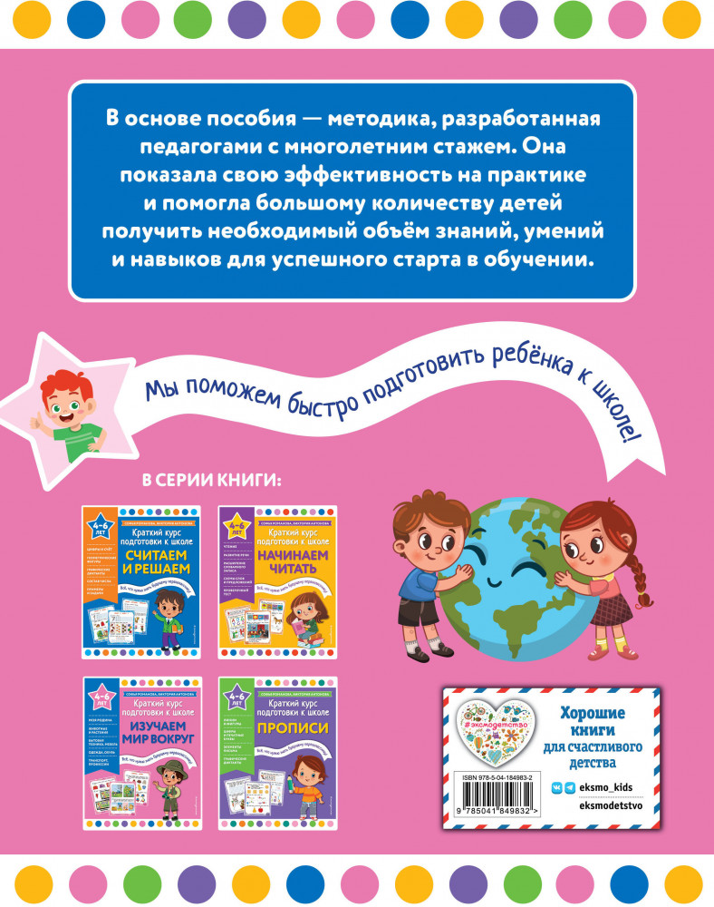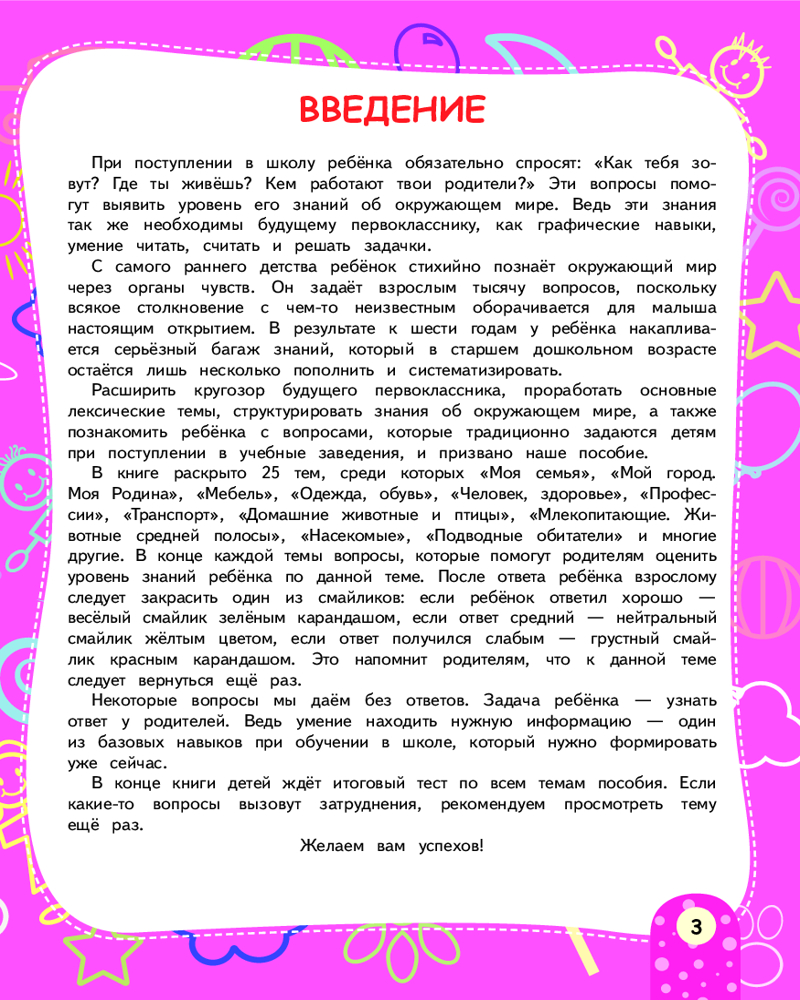 Серия: Краткий курс подготовки к школе Авторская методика, положенная в основу пособия, гарантирует высокий результат без помощи репетиторов! Задания подобраны так, чтобы они были интересны детям и при этом не требовали знаний выше возрастного уровня. В пособии рассматриваются важнейшие темы: «Моя Родина», «Животные и растения», «Профессии», «Транспорт», «Мебель», «Обувь и одежда» и другие. В конце каждого раздела есть вопросы, которые помогут родителям оценить уровень знаний ребёнка. После ответа дошкольника взрослому следует закрасить один из смайликов: если ребёнок ответил хорошо — весёлый смайлик зелёным карандашом; если ответ средний — спокойный смайлик жёлтым цветом; если ответ слабый — грустный смайлик красным карандашом, — и вернуться ещё раз к этой теме. |