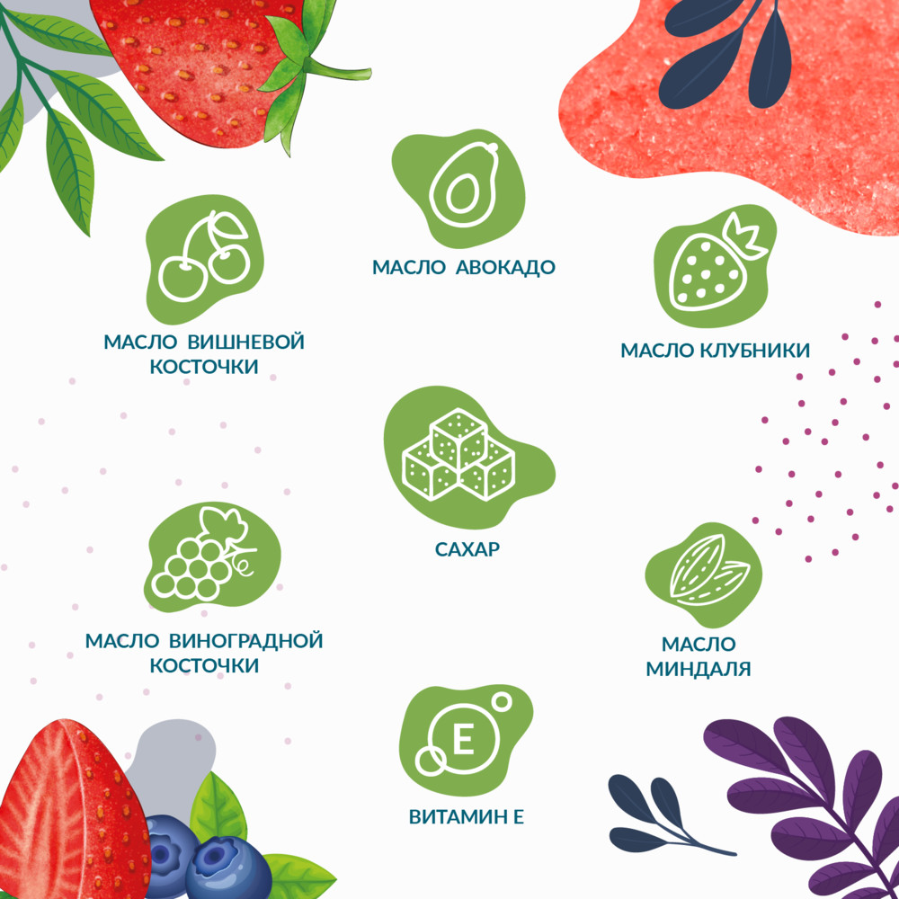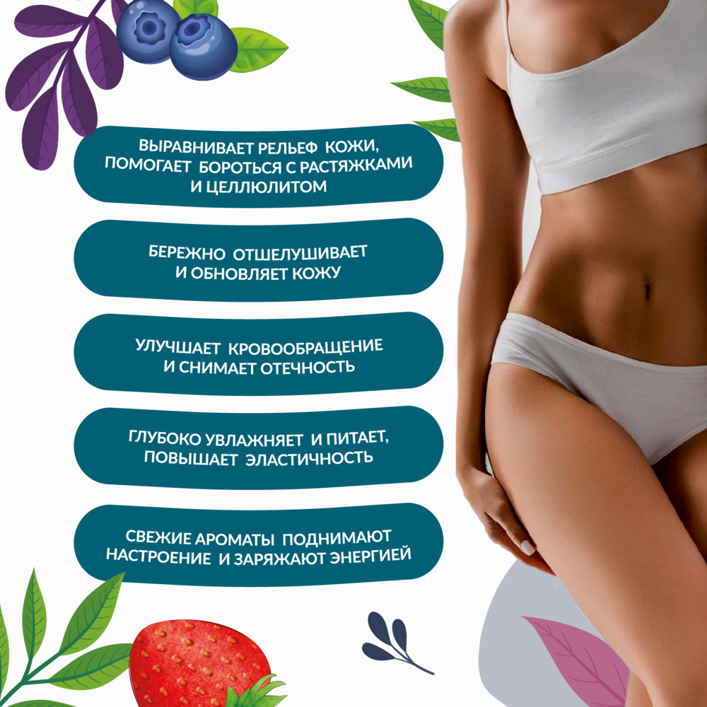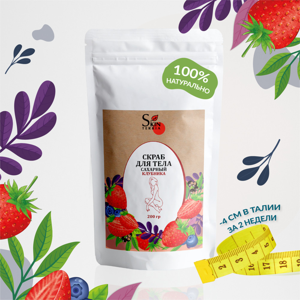 Skinterria Скраб для тела антицеллюлитный сахарный с маслами «Клубника»