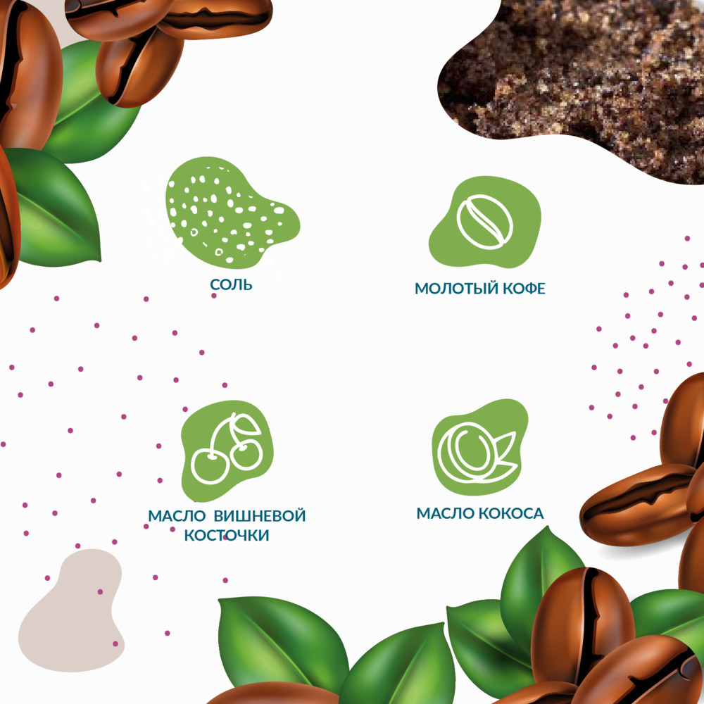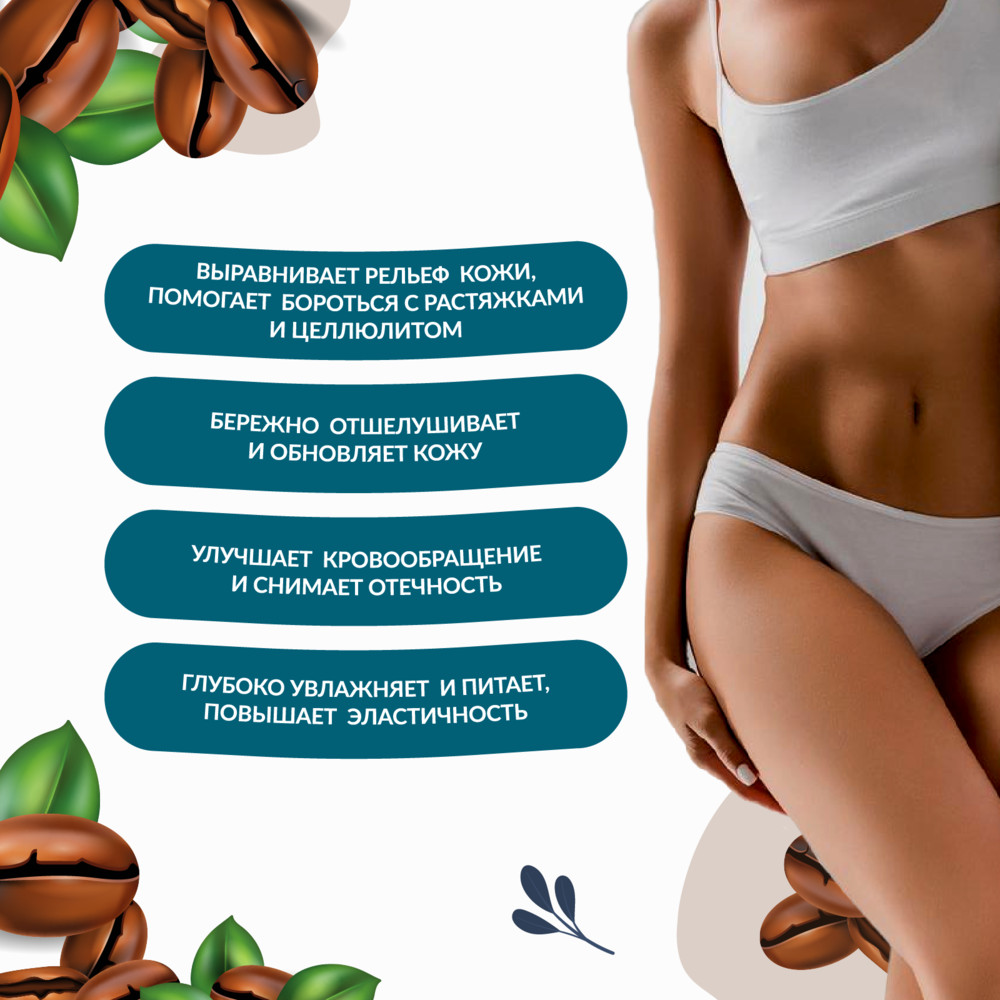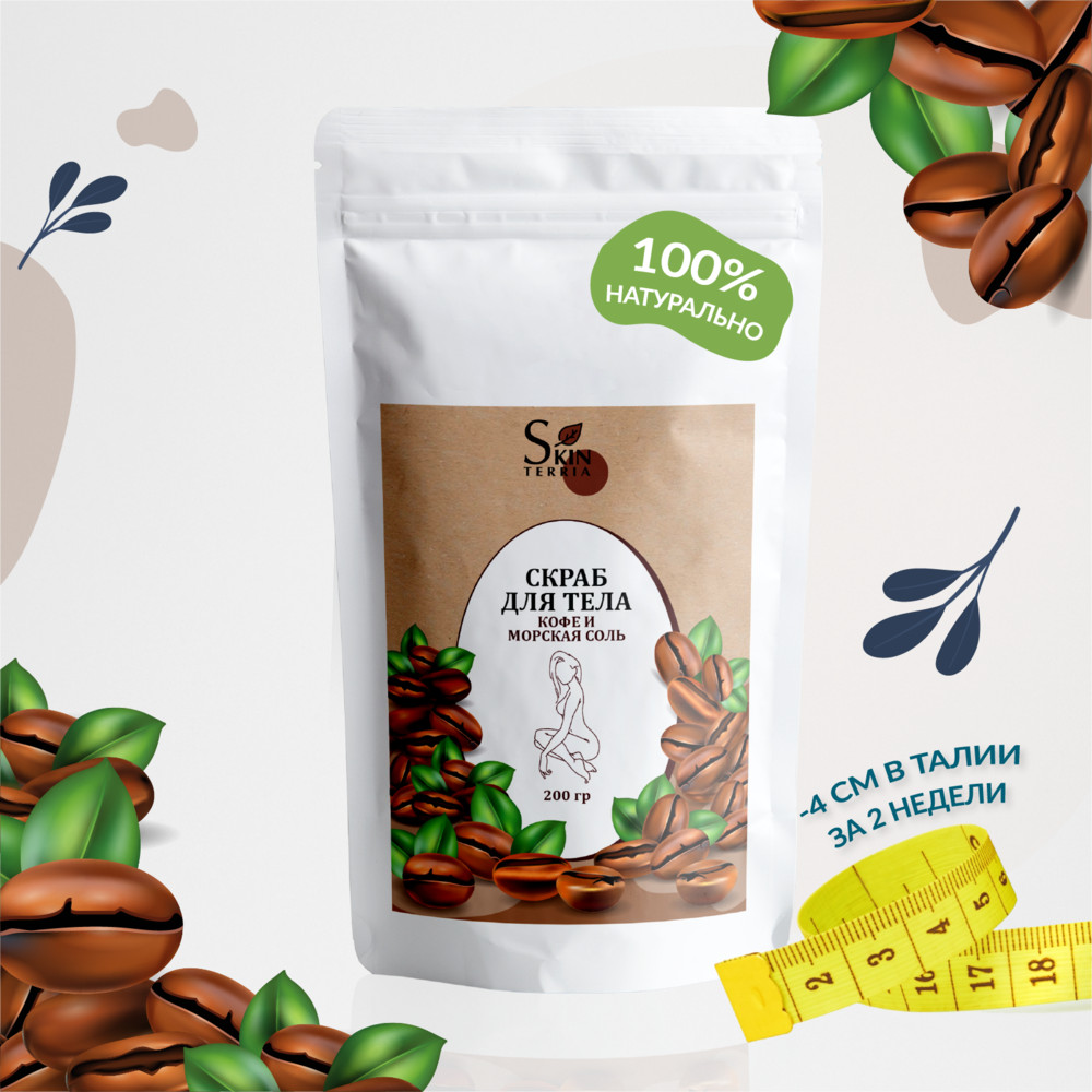 Skinterria Скраб для тела антицеллюлитный сахарный с маслами «Кофе и морская соль»