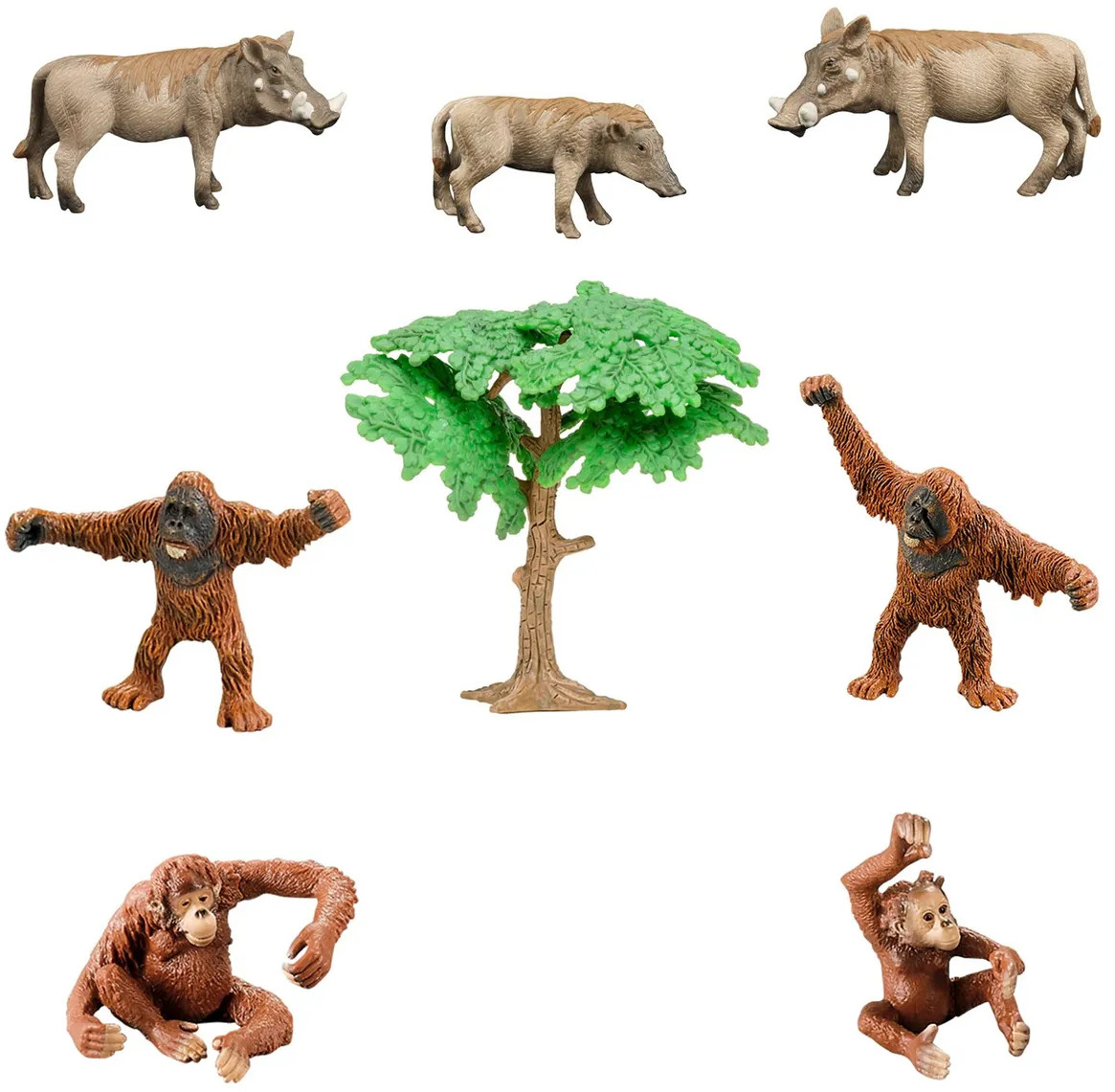 Серия: Мир диких животных В игровом наборе «Дикие животные» — фигурки четырех орангутанов и трех бородавочников являются уменьшенными копиями реальных животных. Они максимально похожи на настоящих животных. Такие фигурки приятно дарить и получать в подарок. |