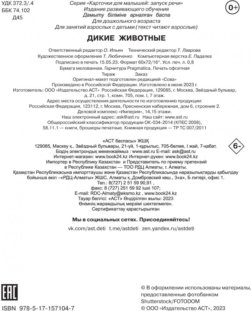 Серия: Карточки для малышей: запуск речи «Дикие животные» — это книжка с отрезными карточками, основанная на популярной методике Гленна Домана. Каждая страничка книжки — это карточка с красочным фотоизображением животного и легко читаемой подписью с его названием. Регулярные занятия по карточкам позволят малышу получить первые представления об окружающем мире, потренировать мышление, развить память. Карточки подходят для обучения детей от трёх месяцев. |