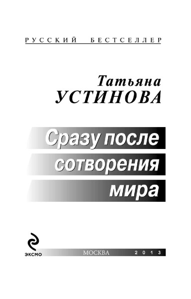Сразу после сотворения мираВ данный момент этот товар отсутствует в продаже. Возможно, у нас найдется аналогичный или похожий товар здесь. Серия: Татьяна Устинова. Первая среди лучших Жизнь Алексея Плетнева в самый неподходящий момент сделала кульбит, «мертвую петлю», и он оказался в совершенно незнакомом месте — деревне Остров Тверской губернии! Его прежний мир рухнул, а новый еще нужно сотворить. Ведь миры не рождаются в одночасье! |