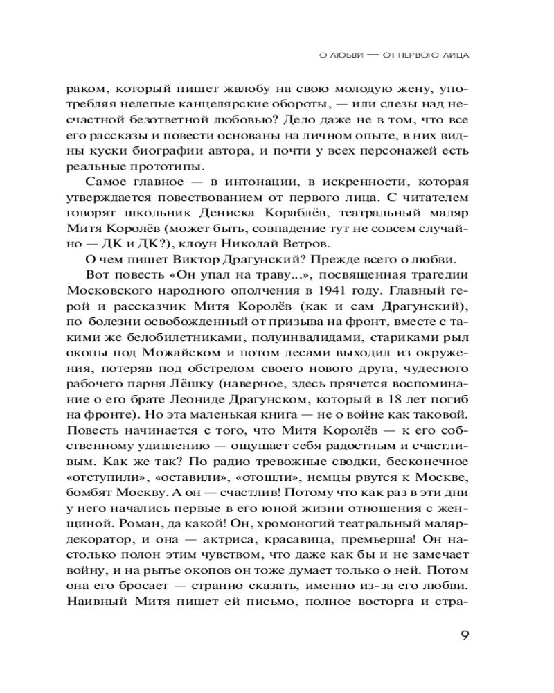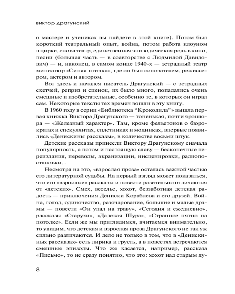 Серия: Предметы культа Сборник избранных повестей и рассказов: недетская проза автора знаменитых «Денискиных рассказов». «Взрослая» проза Виктора Драгунского открывает писателя с новой стороны. Герои книги — взрослые люди, пережившие многое, — а авторская проникновенная интонация, полная нежной иронии, — всё та же.Книга сопровождается предисловием сына Виктора Драгунского, писателя Дениса Драгунского. |