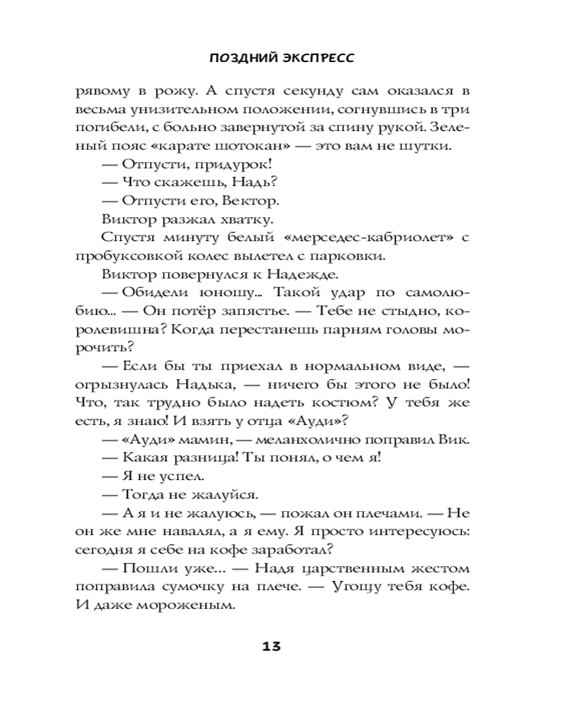 Поздний экспрессВ данный момент этот товар отсутствует в продаже. Возможно, у нас найдется аналогичный или похожий товар здесь. Серия: Романтика с веселой приправой Надежда — студентка МГИМО, Виктор — студент политеха. Они дружат с детства и никаких особенны чувств друг к другу не испытывают, как вдруг... Надя знакомит Виктора со своей подругой, и тут на ее глазах между ее друзьями начинается бурный роман. Всё может отдать девушка своей подруге, всё, только не того парня, которого она давным-давно считала своей собственностью. Ее чувство переходит в страсть, доходящую почти до умопомрачения, страсть, пределы которой даже трудно представить. Но Виктор словно и не замечает,как изменилась к нему его подруга детства. Или не хочет замечать?.. |