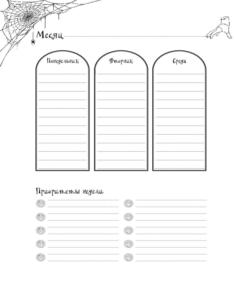 Серия: Quick book Ты чувствуешь, как тьма окутывает тебя? А это легкое постукивание пальцев? Добро пожаловать в мир готики! Этот еженедельник прекрасно подойдет для людей, которые любят планировать свое время. Академия Невермор ждет тебя. |