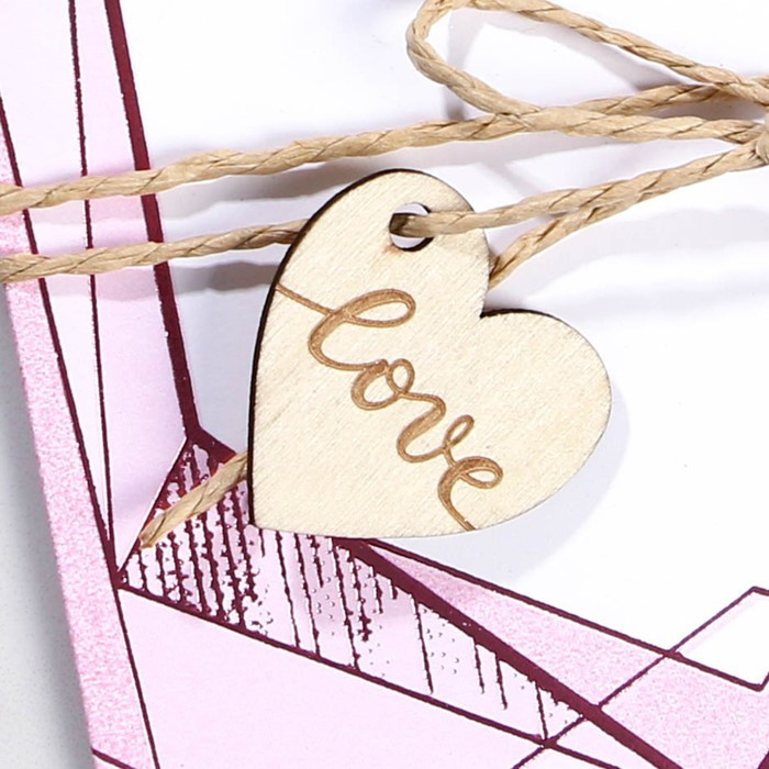 Изделие выполнено из бумаги плотностью 300 г/м² и дополнено деревянным украшением в виде сердца. Это придаёт дорогой и роскошный вид. Текст приглашения содержит свободные поля для имени адресата, времени, даты и адреса проведения мероприятия. Это потрясающее приглашение достойно стать частью такого важного события в жизни, как свадьба!