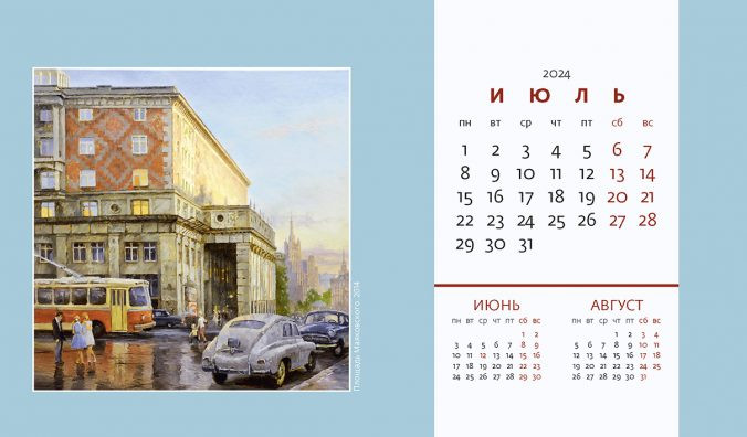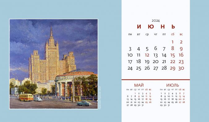 Календарь-домик на 2024 год «Очарование Москвы»В данный момент этот товар отсутствует в продаже. Возможно, у нас найдется аналогичный или похожий товар здесь. Серия: Календарь-домик с разрезным блоком Борис Александрович Ведерников — заслуженный художник РФ, член-корреспондент РАХ, преподает курс масляной живописи в Академии акварели и изящных искусств С. Н. Андрияки. Его можно назвать приверженцем метафоричного реализма, т. к. он воссоздает картины ушедшего времени, атмосферу тех времен. Поэтому и Москву в его картинах мы видим такой, какой она была в 50–60 годы ХХ столетия: малое количество машин на дорогах, синий троллейбус, автомобили «Москвич» и «Победа», отсутствие рекламы. Все городские пейзажи написаны с безграничной любовью и теплотой к столице. |