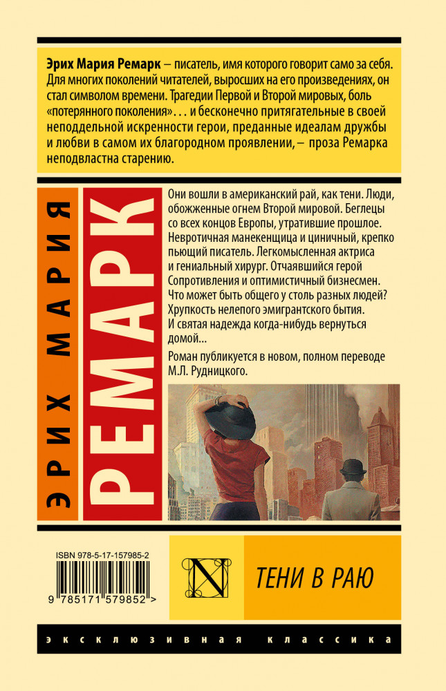Тени в раюВ данный момент этот товар отсутствует в продаже. Возможно, у нас найдется аналогичный или похожий товар здесь. Серия: Эксклюзивная классика (Лучшее) Пронзительная история эмигрантов, спасавшихся от нацистского режима в Америке. Очередной бестселлер от автора культовых романов «Три товарища», «Черный обелиск» и «На Западном фронте без перемен». Для всех поклонников Эрнеста Хемингуэя, Ирвина Шоу, Джона Стейнбека и Томаса Вулфа.В новом переводе Михаила Рудницкого. |